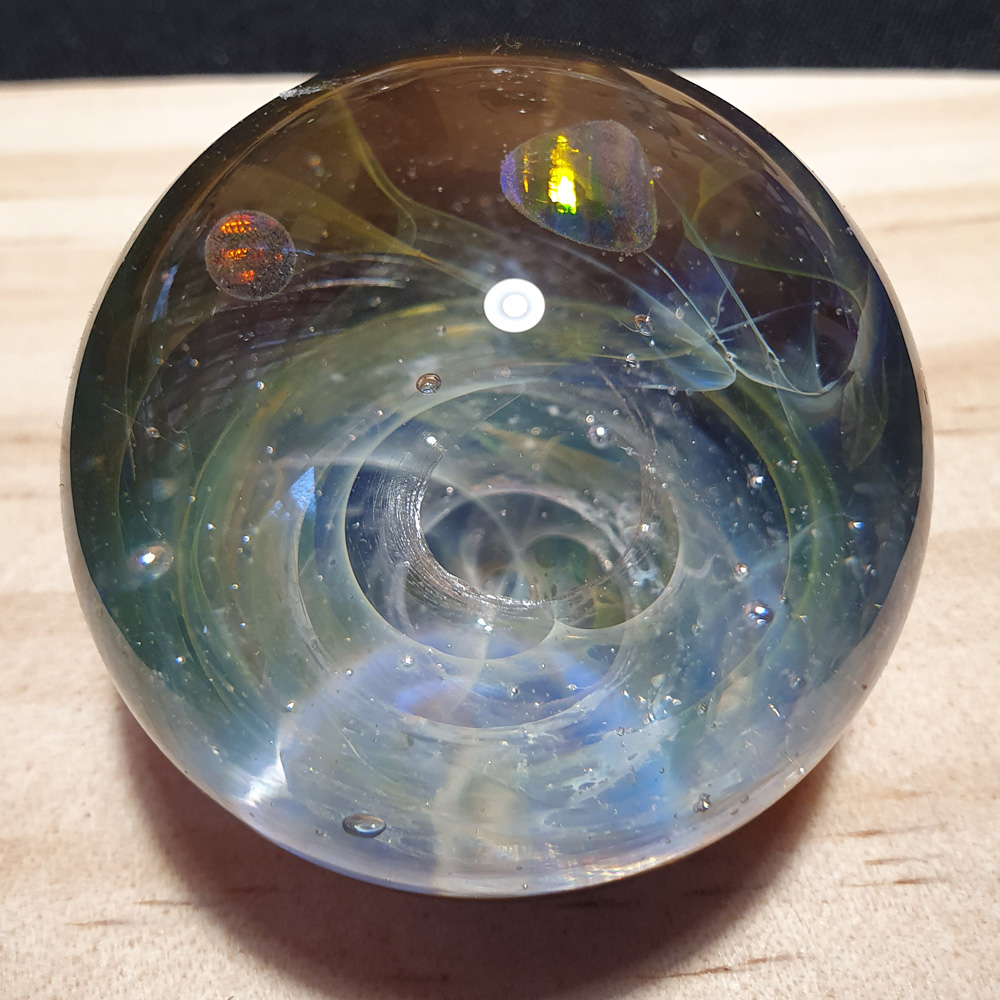 Opale verte ronde, argent incorporés dans le vortex rouge